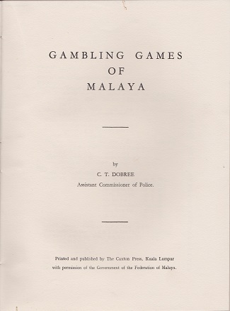 This book describes the gambling games played in Malaya in the first half of the 1900's.