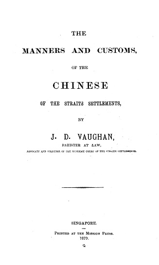 The manners and customs of the Chinese of the Straits Settlements