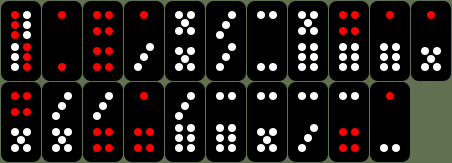 Around 700 AD, dominoes appear in China, they are an extension of dices, they correspond to the 21 different combinations resulting from throwing 2 dices.
