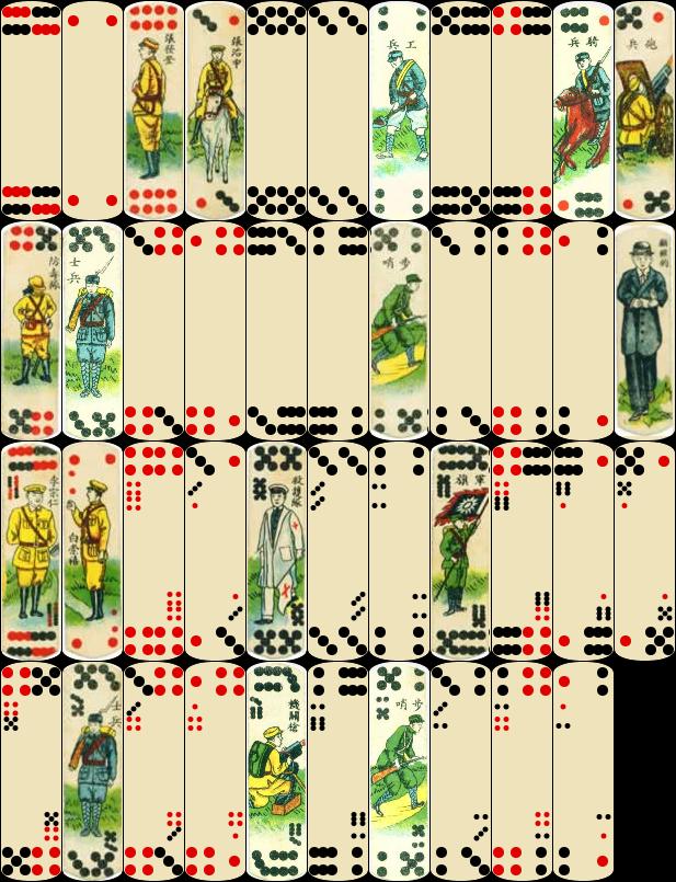 Basic sets of dominoes consist of one of each military domino, and two of each civilians.