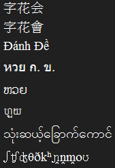 | Khmer | ហួយ | ![]() | Khmer fonts |