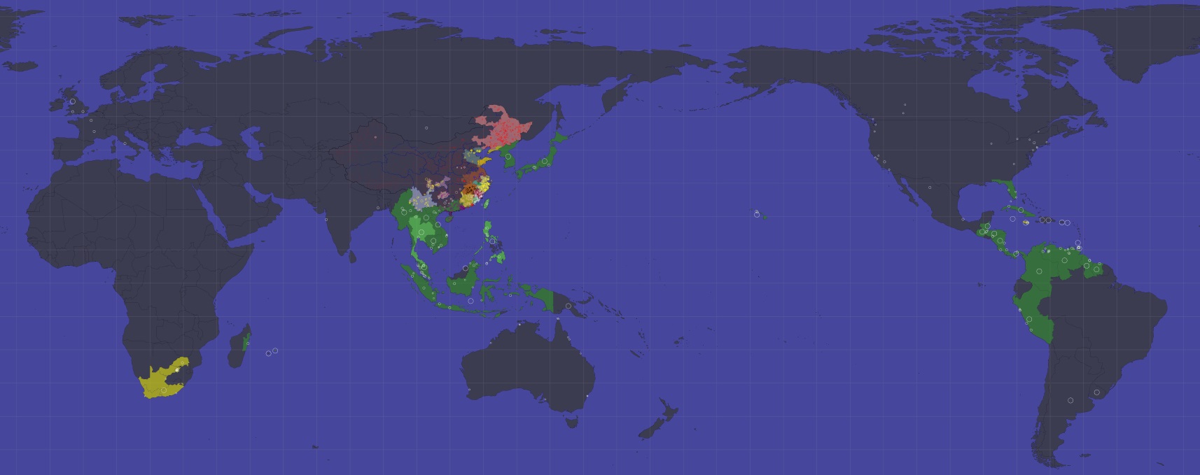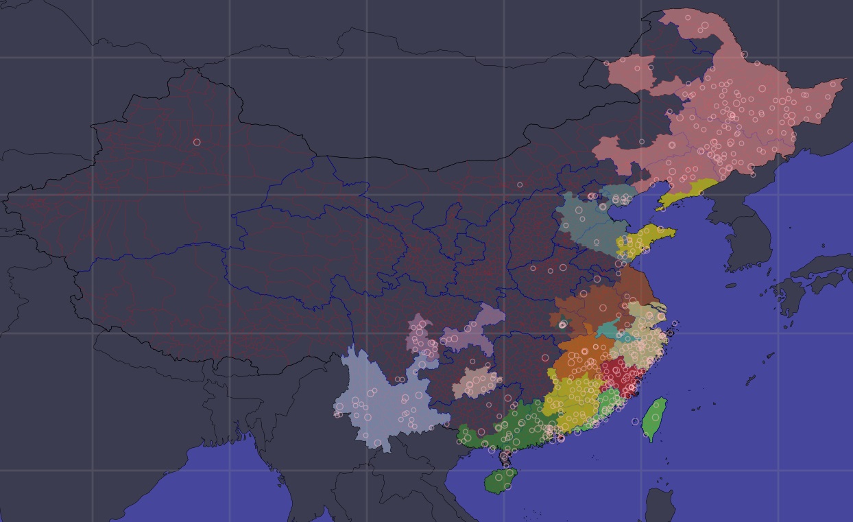 Out of China, colors represent the chinese local variant from which the locan version comes :
