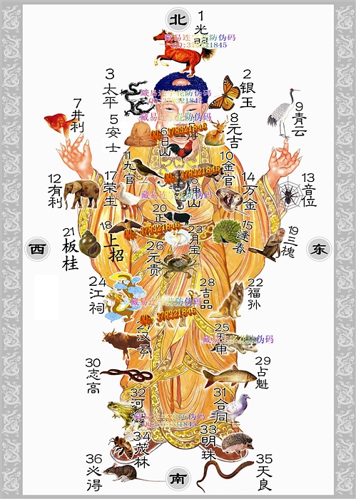 | 36字花人身动物对照图 | 48字花人身动物对照图 | 三十六字花(动物) | |