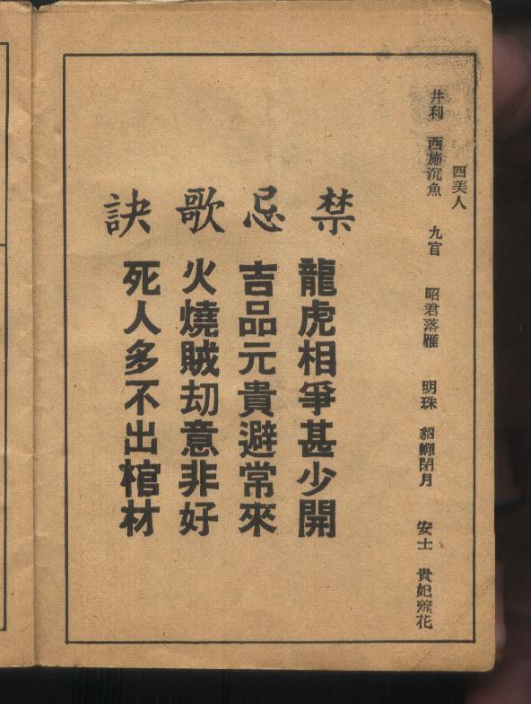 | 龍虎相爭甚少開 | 吉品元貴避常來 | 火燒賊刧意非好 | 死人多不出棺材 |