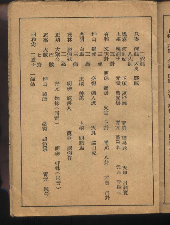 1至4 四狀元 5至9 五虎將 10至16 七生利 17至18 二道士 |