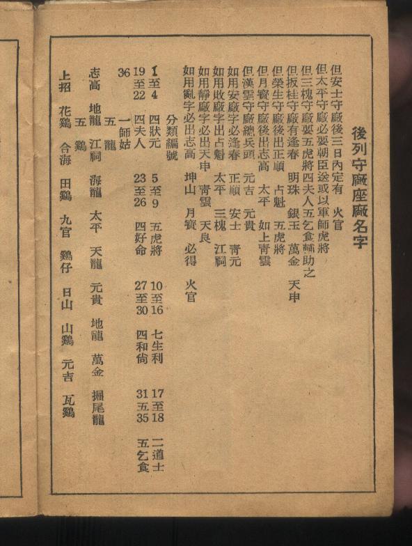 | 後列守廠座廠名字 | 但安士守廠後三日內定有 火官 |