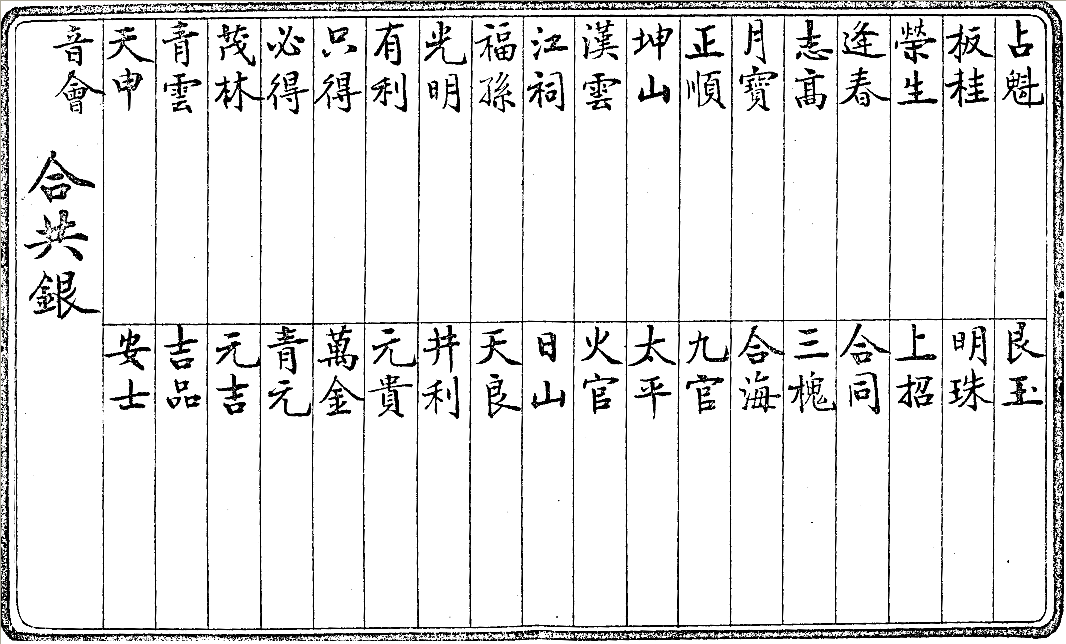 | 24 | 合海 | Hup Hie | Frog | Tioh Hap Hai | |