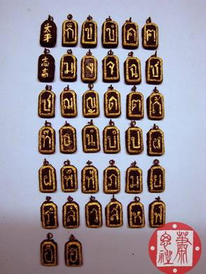 When introduced into Thailand, these were increased to thirty-six and, to popularize the system to the Thai, each was assigned a Thai consonant, each letter to represent the personage and the animal which was the former birth-state of the said personage.
